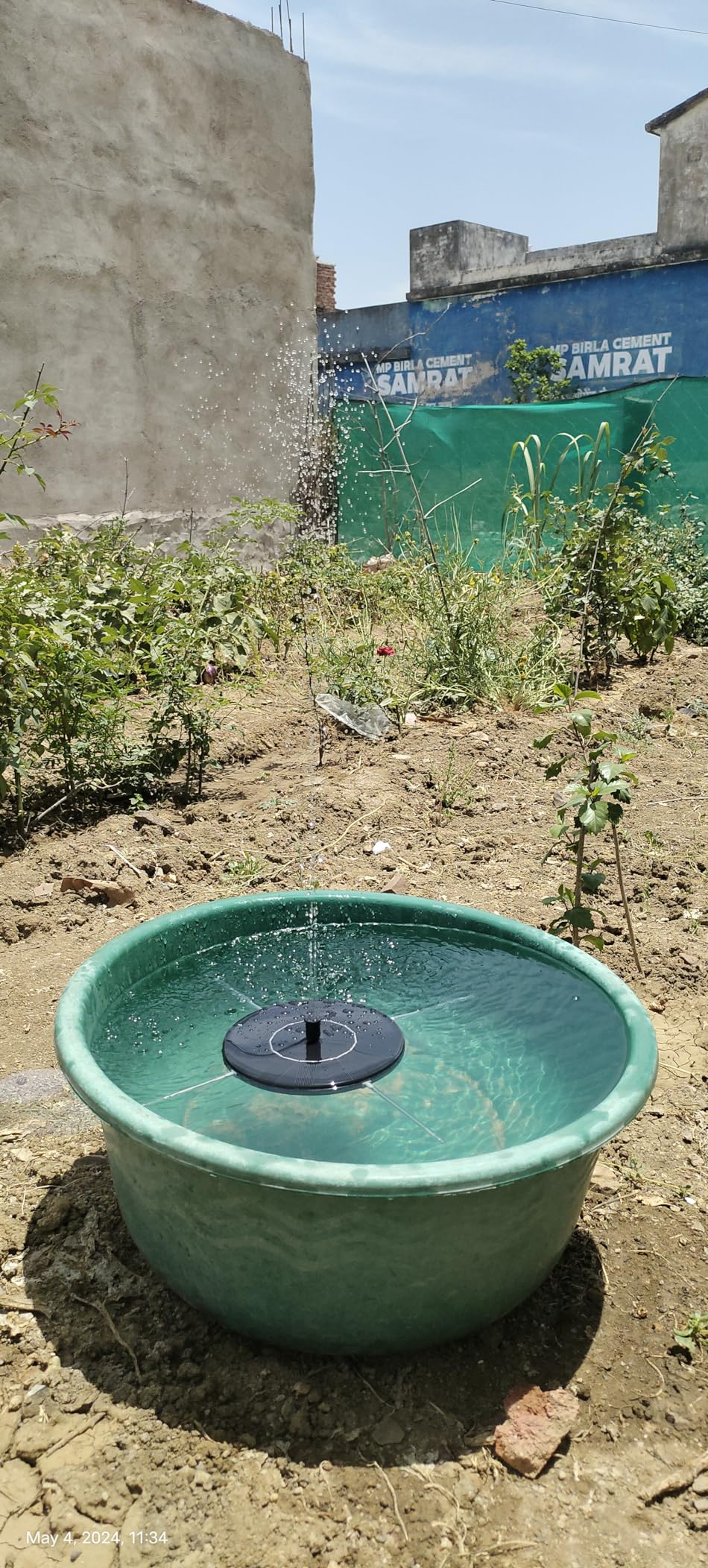 It's 5th may 2024, totally sunny day and you can see fountain height. It's approx 1.5 feet. Comes with 6 different types of output styles. Good to attract our kids and surrounding birds. Works with direct Sun 🌞 light.